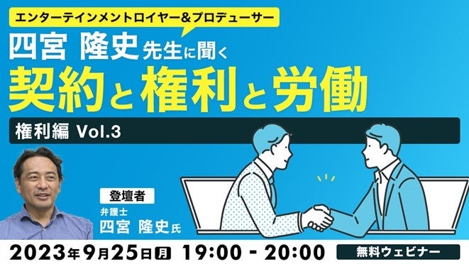 これはパクり?それともセーフ?著作権・商標権など、エンタメ業界にまつわる法律を学ぶ9/25(月)無料セミナー「四宮隆史先生に聞く 契約と権利と労働 ~権利編Vol.3~」
