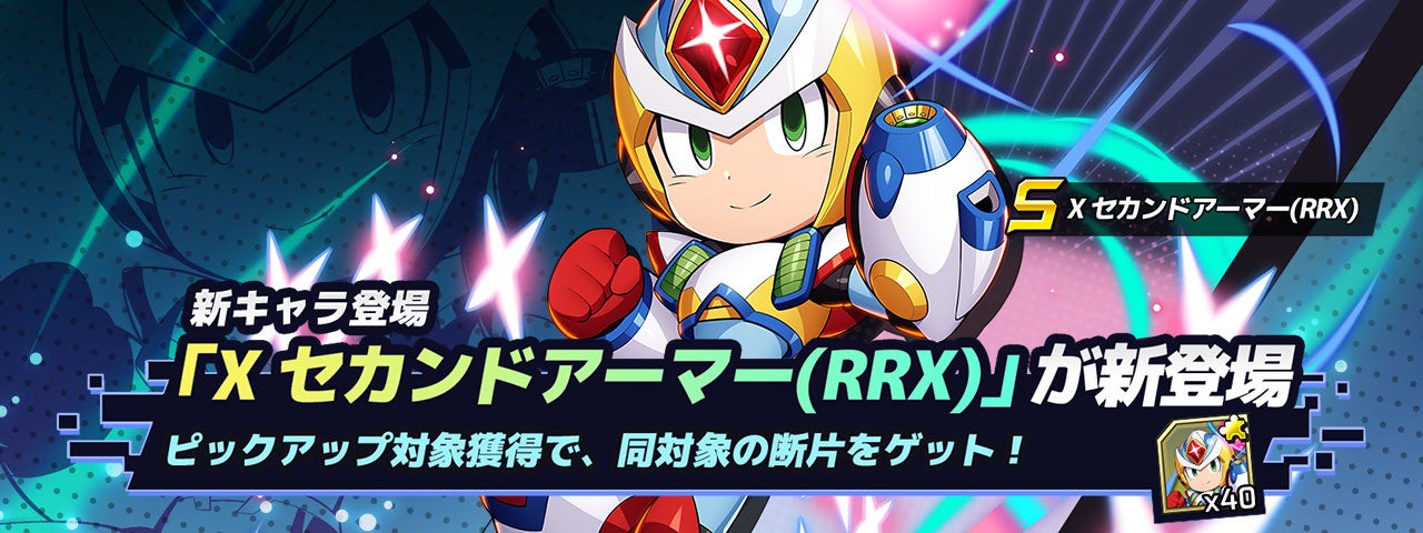 iOS/Android用ゲームアプリ『ロックマンX DiVE』では、本日5月18日(水)より、「Xセカンドアーマー(RRX)」が新登場&ピックアップされたカプセルと、イベントステージ「端午の出撃!ロックマンロックマンX」を開催します。