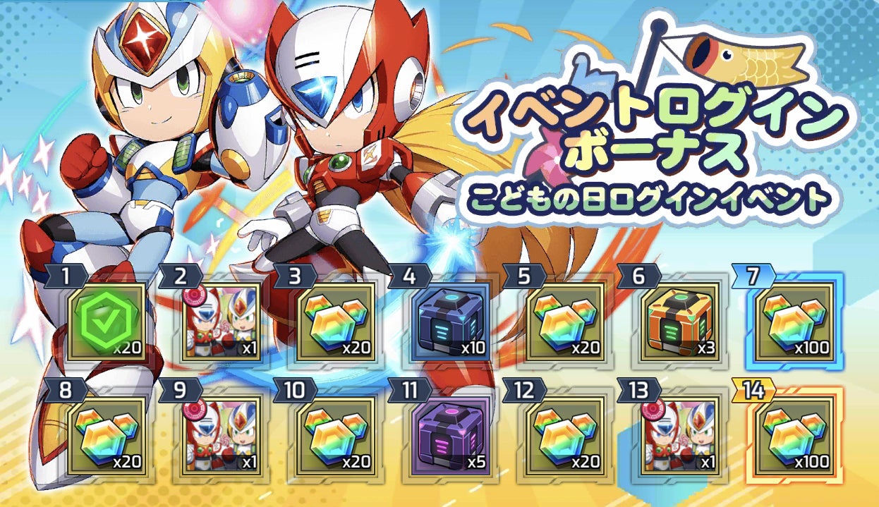 さらに、「端午の出撃!ロックマンロックマンX」開催を記念して、6月8日(水)までログインボーナスが開催中!最大320個! エレメタル(無償)プレゼント!