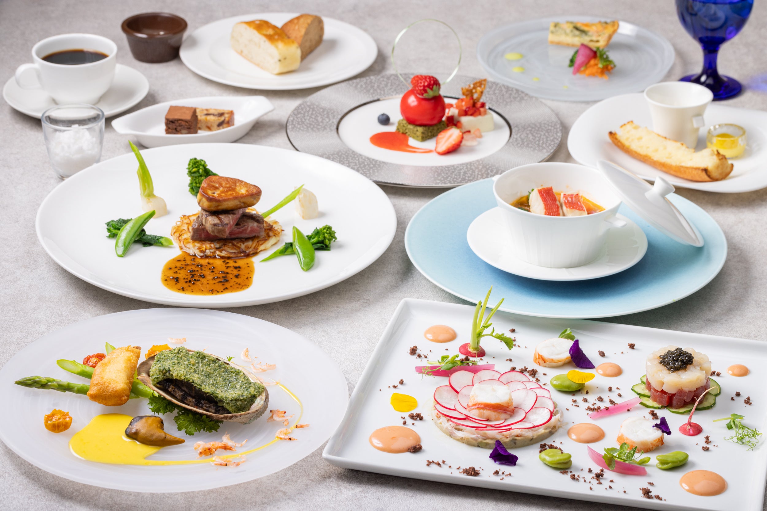 ・アミューズ・ブーシュ ・伊豆産伊勢海老と蟹肉のサラダ仕立て、帆立貝と鮪のタルタル、オーロラソース ・伊豆漁港水揚げ金目鯛と富士山サーモンのブイヤベース、ガーリックトースト添え ・パンと河津桜チップで燻したホイップクリーム ・鮑のエスカルゴバターパン粉焼き、野菜のベニエ、サフラン風味のブールブランソース ・黒毛和牛フィレ肉のグリエとフォワグラポワレ、ジャガイモのガレット、トリュフ風味のジュ・ド・ブッフソース ・アヴァンデセール ・イチゴとマスカルポーネのムース、ヴァニラアイス添え ・小菓子 ・コーヒー または 紅茶 |