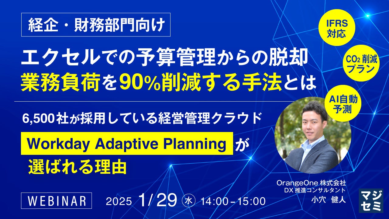 マジセミ株式会社は「【経企・財務部門向け】エクセルでの予算管理からの脱却、業務負荷を90%削減する手法とは」というテーマのウェビナーを開催します。