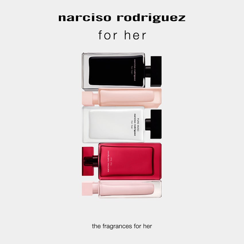 “エレガンス”の建築家と呼ばれるナルシソ・ロドリゲスの作品とインスピレーションの源は、女性。ナルシソ ロドリゲスの共通するハートオブムスクは、エレガントと官能性を表現しています。それは人を永遠に虜にするユニークなシグネチャーセントであり、肌に纏った時にその魅力を発揮する、本当の意味での「肌の香水」です。