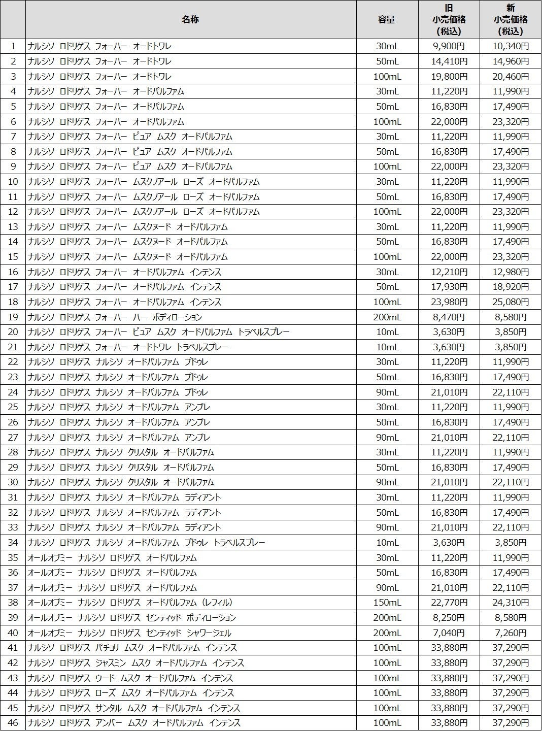 〈ナルシソ ロドリゲス パルファム〉価格改定に関するお知らせ