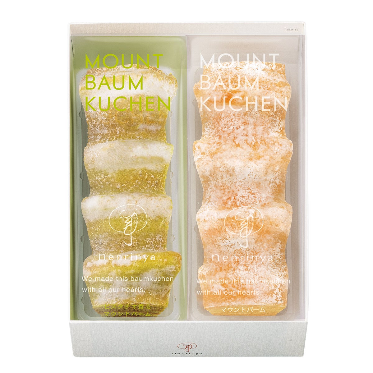バター⾵味たっぷりの代表作『マウントバーム しっかり芽』と、新作『ピスタチオ香るマウントバーム』を⼀度に楽しめる夏限定の詰合せ。