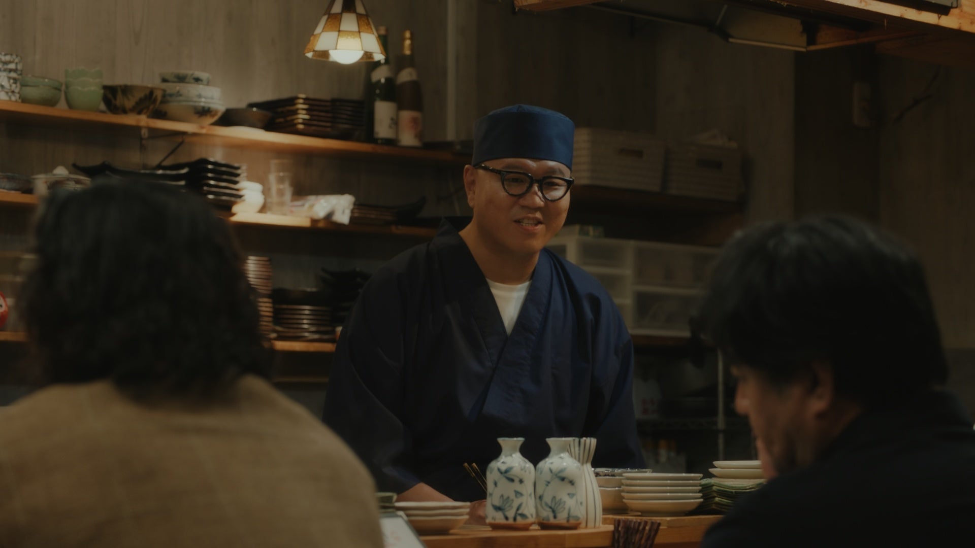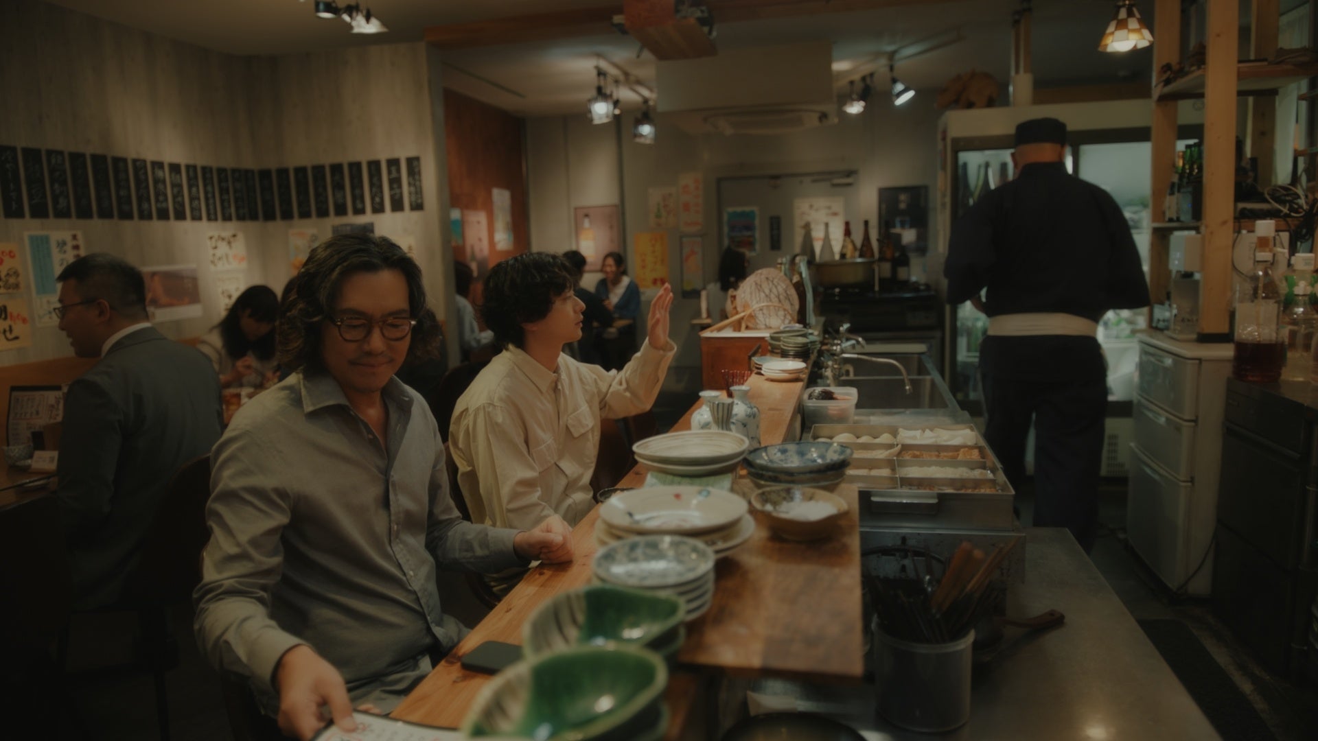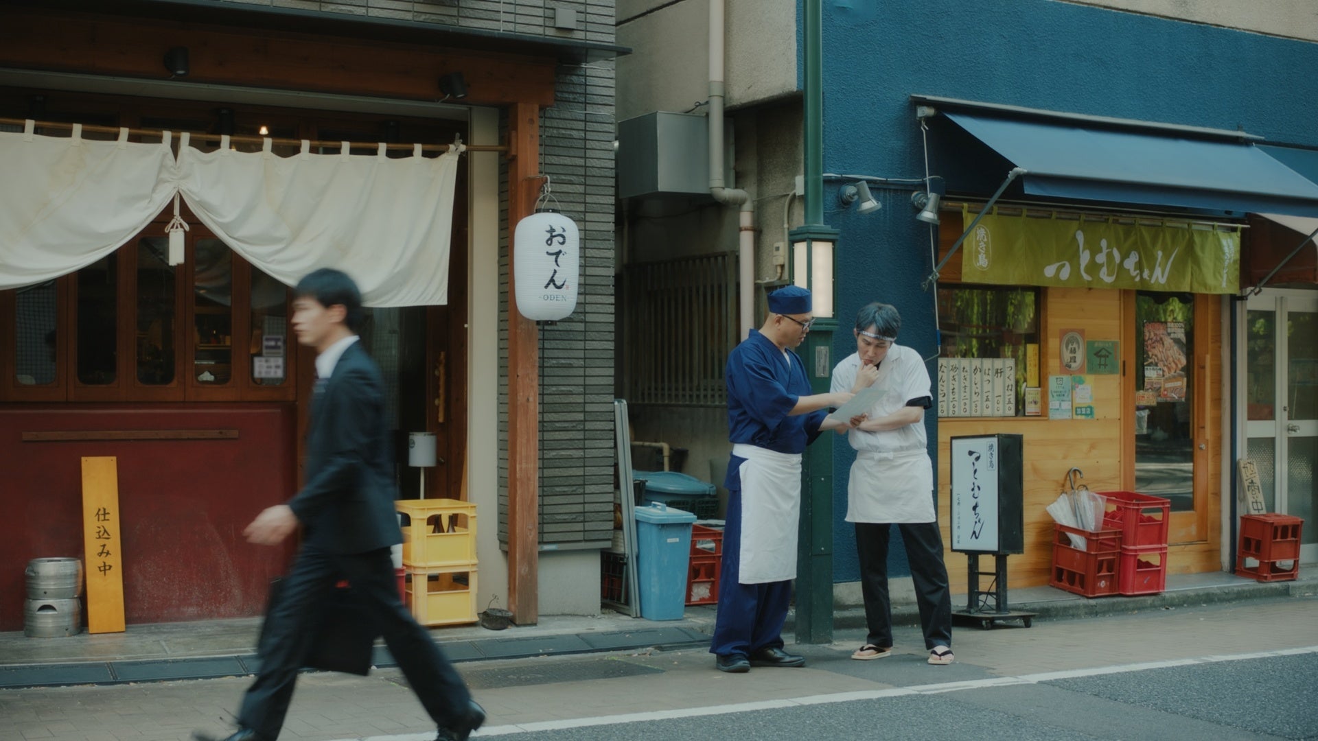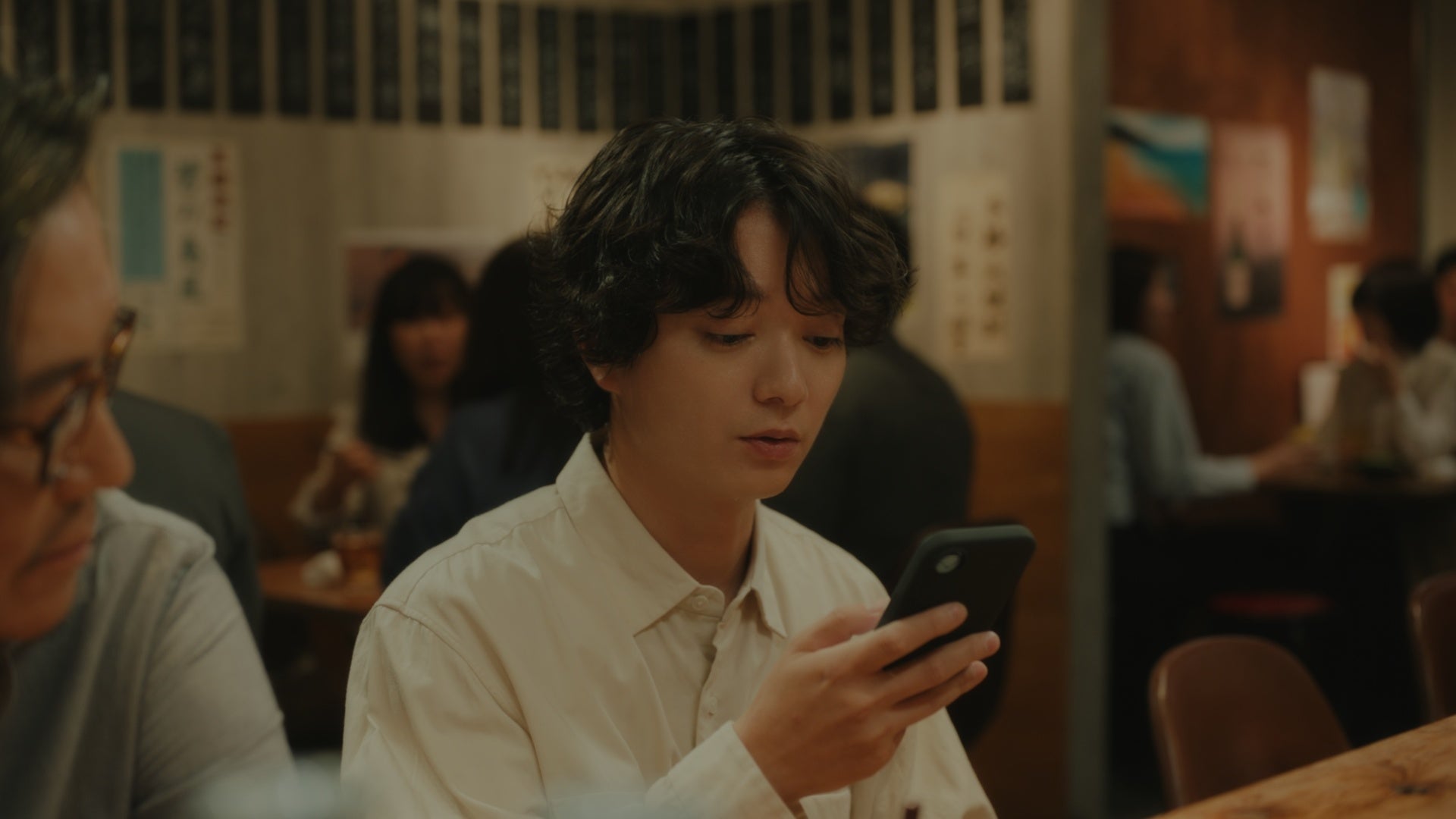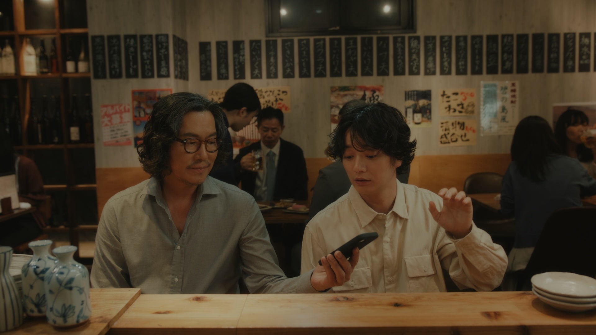 “口頭注文とスマホ注文が混在する”リアルな居酒屋の風景を描写。小手さん演じる隣の客が、『Airレジ オーダー』を使いこなす豊川さんを見て、「スマホで注文!?」と興味を持つリアクションをきっかけに、口頭で注文したい人にも、モバイルで注文したい人にも、お客様が心地いいお店づくりができることを、豊川さん&長谷川さんの静かなやりとりで表現しています。