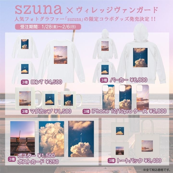 【szuna×ヴィレッジヴァンガードコラボグッズ発売決定!!】~幻想的な空の写真作品のオリジナルグッズができました~