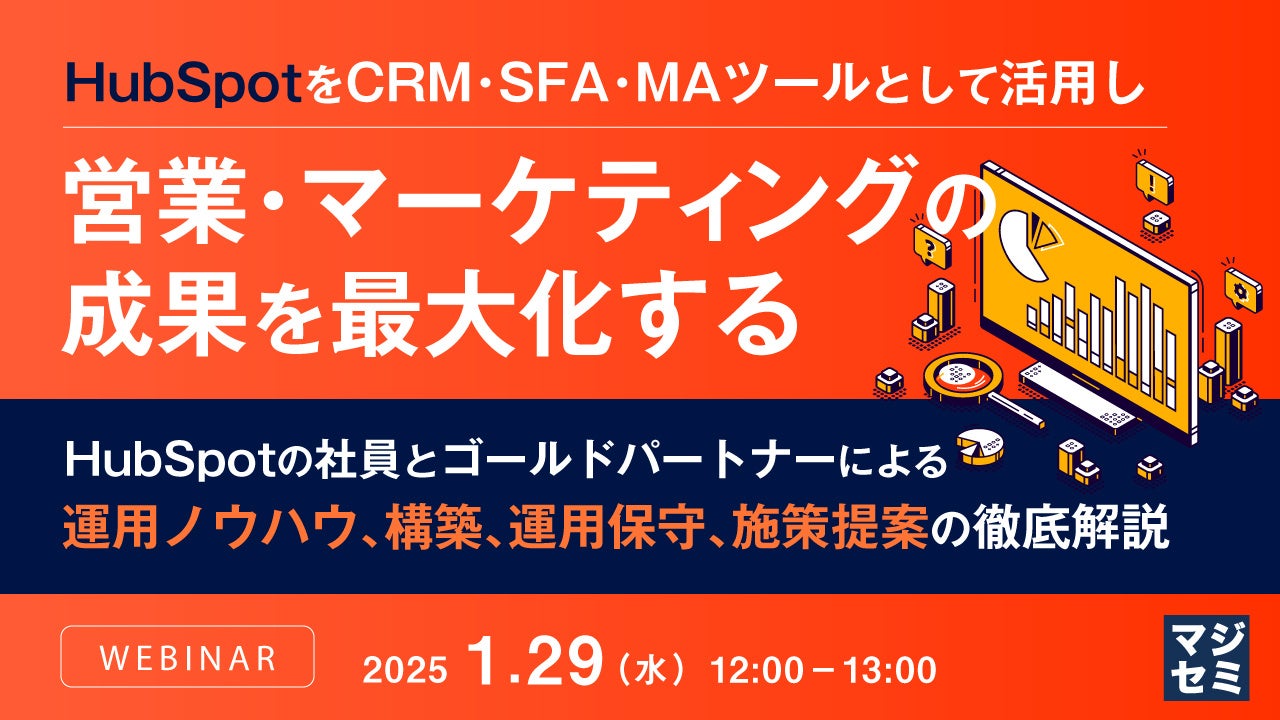マジセミ株式会社は「HubSpotをCRM・SFA・MAツールとして活用し営業・マーケティングの成果を最大化する」というテーマのウェビナーを開催します。