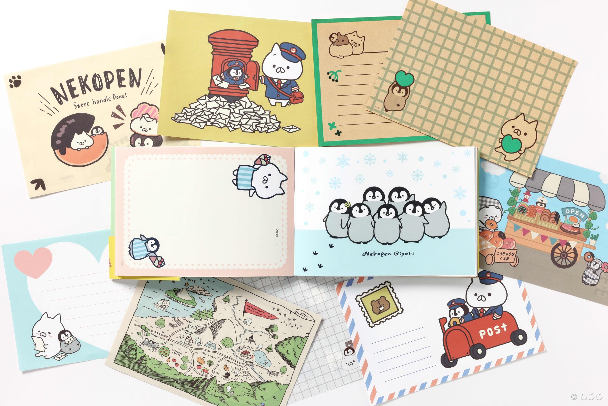▲描き下ろしの「ねこぺんゆうびんやさん」のほか、ねこぺん村の仲間たちのイラストや、サンドベージュの用紙を使った味わいのあるデザインも。