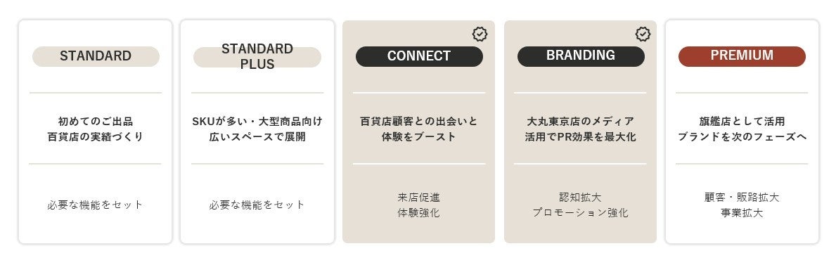 多様な事業課題、目的から選べる、全5プランに拡充し、出品ブランドの募集を開始いたします。