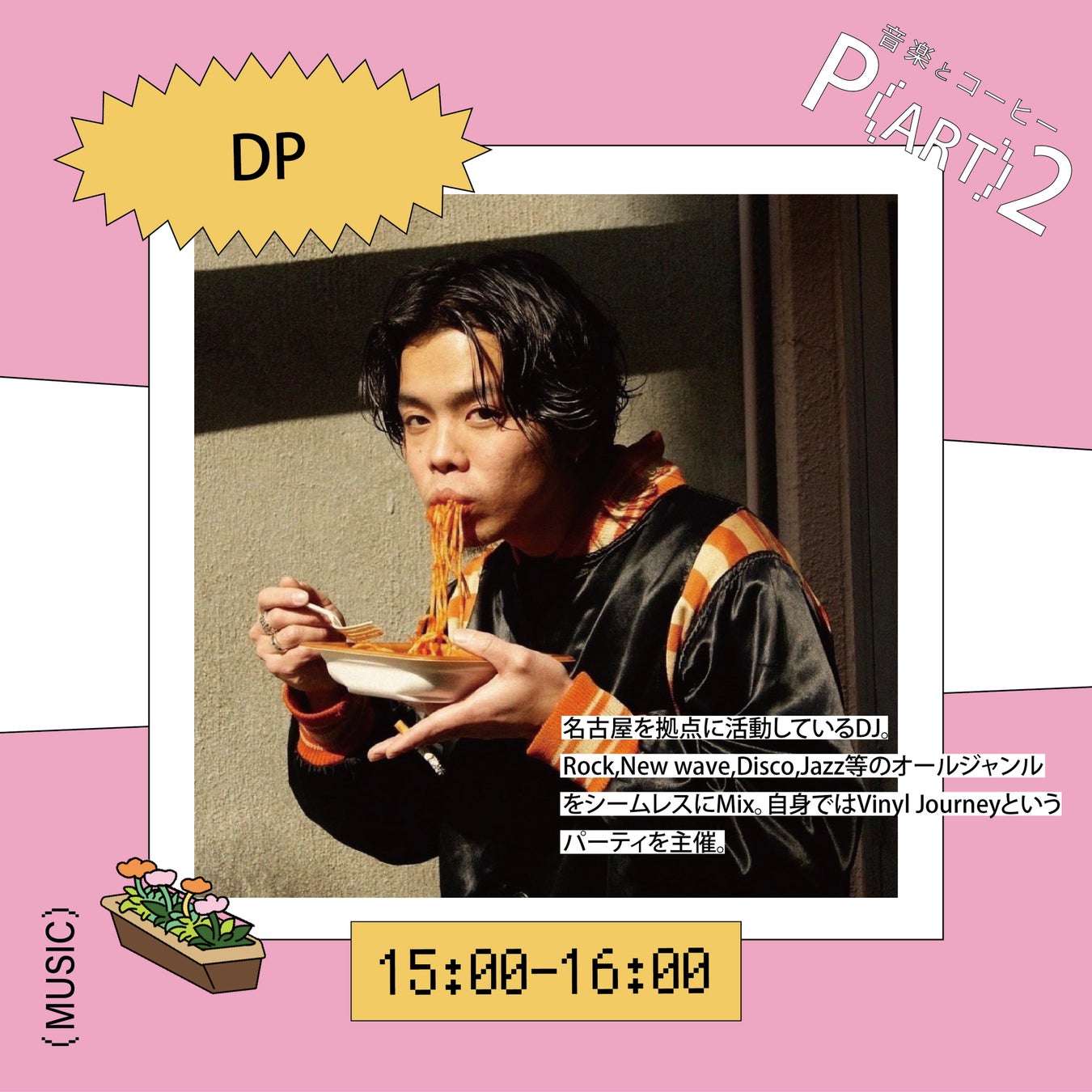 東海エリアで活躍するDJを招き、音楽パーティーを開催。コーヒーを提供するのは、岐阜を拠点に全国各地へドリンクやグッズを届ける「KFP COFFEE KIOSK」当日はフリーコーヒーに併せて東京駒沢で人気のTONEの焼き菓子をセレクト(名古屋初上陸)。