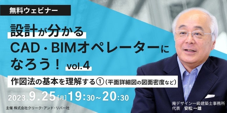 【建築業界】AIに代替されることのない”建築設計が分かるCAD・BIMオペレーター”になろう!9/25(月)無料セミナー「作図法の基本を理解する[1](平面詳細図の図面密度など)」