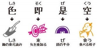 その昔、三蔵法師がインドから無数の仏教経典を持ち帰って漢訳し、まとめたのが般若心経。それを、字が読めなかった庶民のために、わかりやすく絵で説いたのが絵心経です。