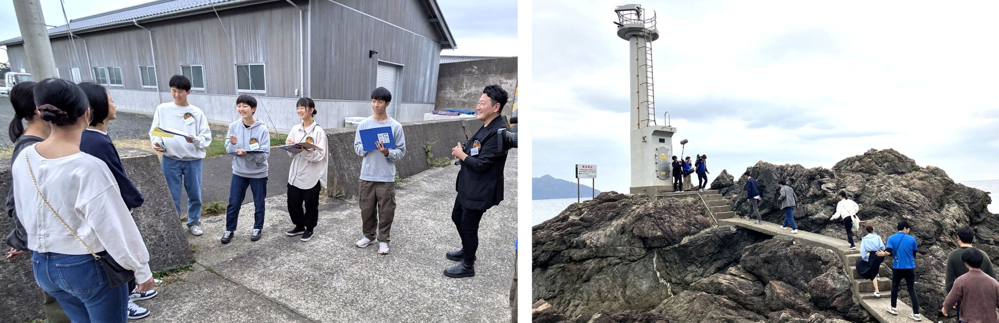 もう一度、「問い」(リサーチクエスチョン)を立て直した高校生たち。その問いの答えを探しに班ごとに実地リサーチに行きます。「海と暮らし」チームは、高浜町漁村文化伝承館でお話を聞いたり、偶然出会った中学生3人組にもリサーチクエスチョンを投げかけていきます。「日本人にとって海とは」チームは、漁師兼卸業をされている福井さんに問いを投げかけたり、高浜町の漁師さんが崇拝する塩土恵美須神社へ実際に足を運びました。人を寄せ付けないような場所にある本殿の姿に高校生たちはそれぞれに感じるものがあったようです。