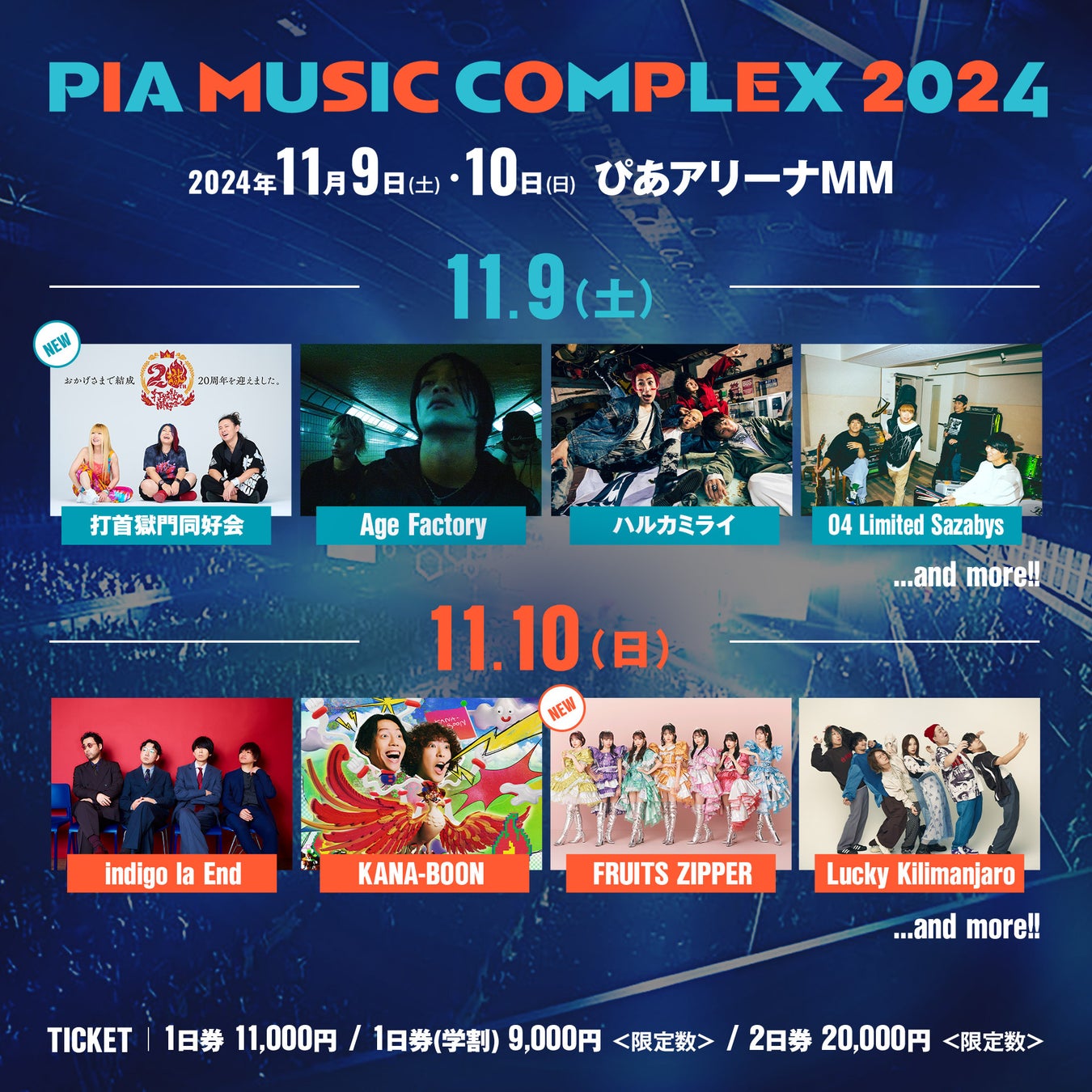 2024年11月9日(土)・10日(日)、横浜・ぴあアリーナMMにて「PIA MUSIC COMPLEX 2024」を開催。本日、第 2 弾出演アーティストを発表いたします。