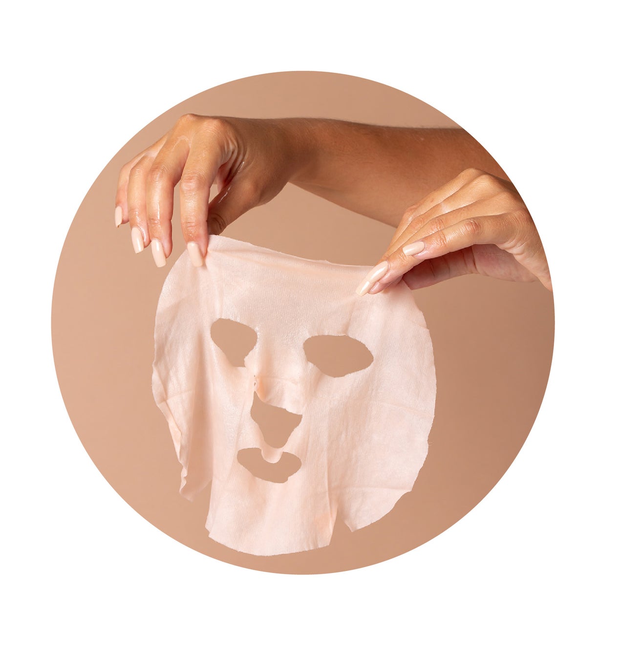 ツバキで作られたほんのりピンクのシートマスクで深い潤いを。
