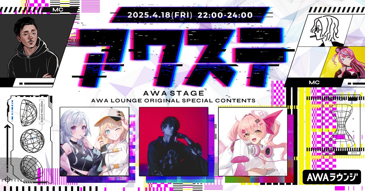 AWA株式会社(本社:東京都港区、代表取締役CEO:冨樫晃己)が運営する、サブスクリプション型(定額制)音楽ストリーミングサービス「AWA(アワ)」は、2025年4月18日(金) 22:00より、無料で誰でも参加できるオンライン空間「ラウンジ」で、ネットシーンを中心とした注目アーティストなどを毎回ゲストに招き、有識者であるMCとともにシーンの次のステージを切り開く番組「AWAステージ(通称:アワステ)」の第48回を開催いたします。