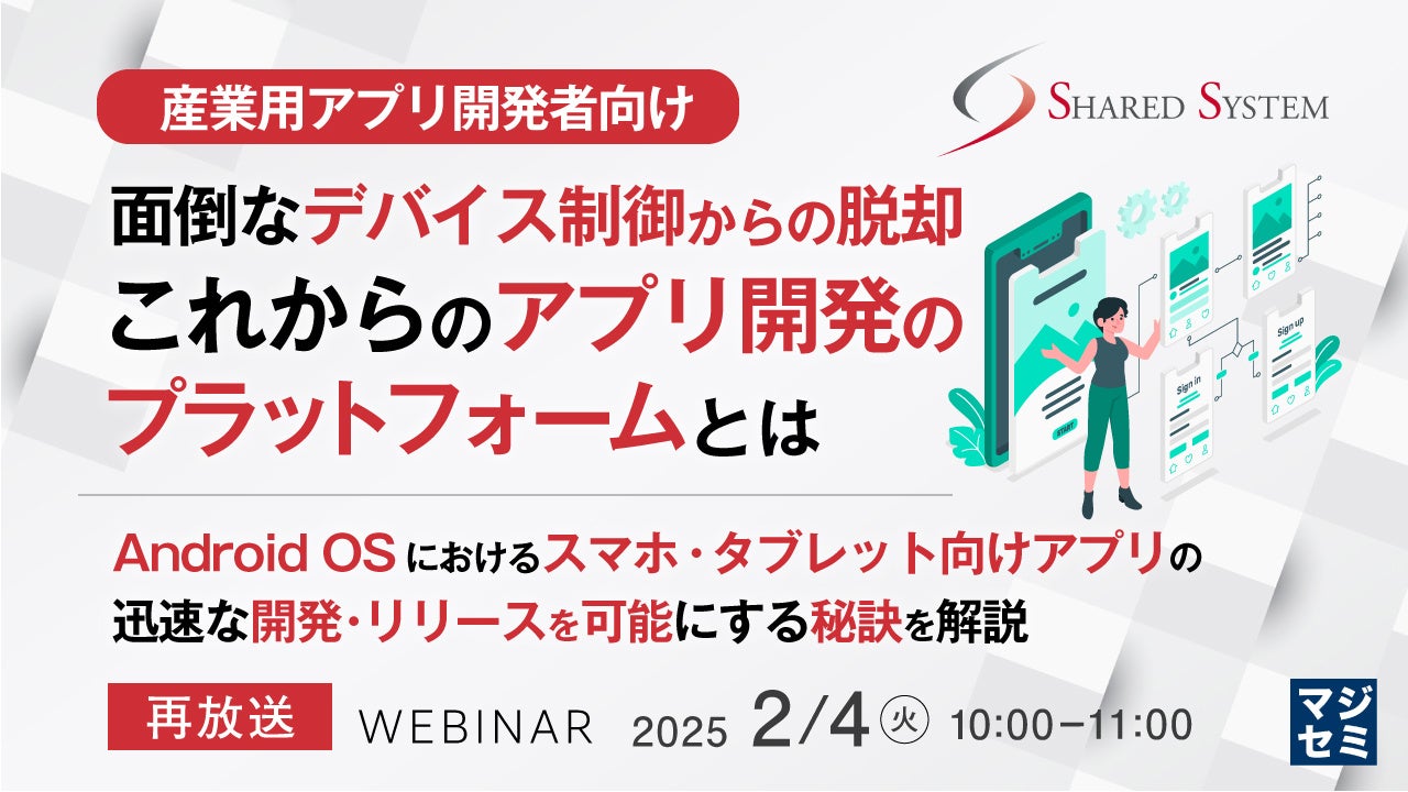 マジセミ株式会社は、大変好評をいただいた「【再放送】【産業用アプリ開発者向け】面倒なデバイス制御からの脱却 これからのアプリ開発のプラットフォームとは」というテーマのウェビナーを再放送します。