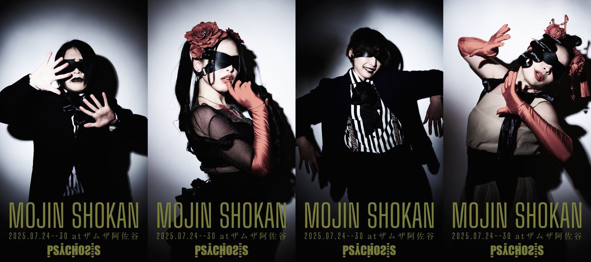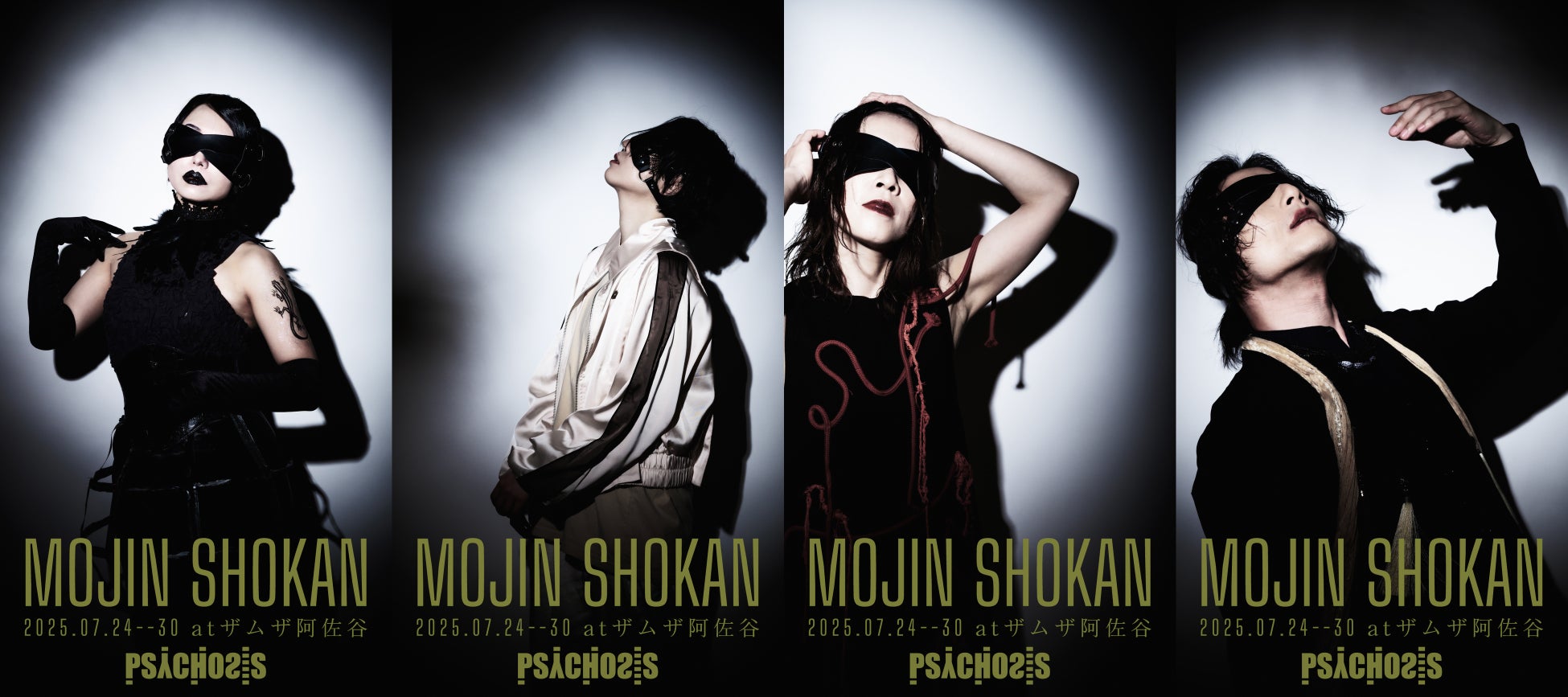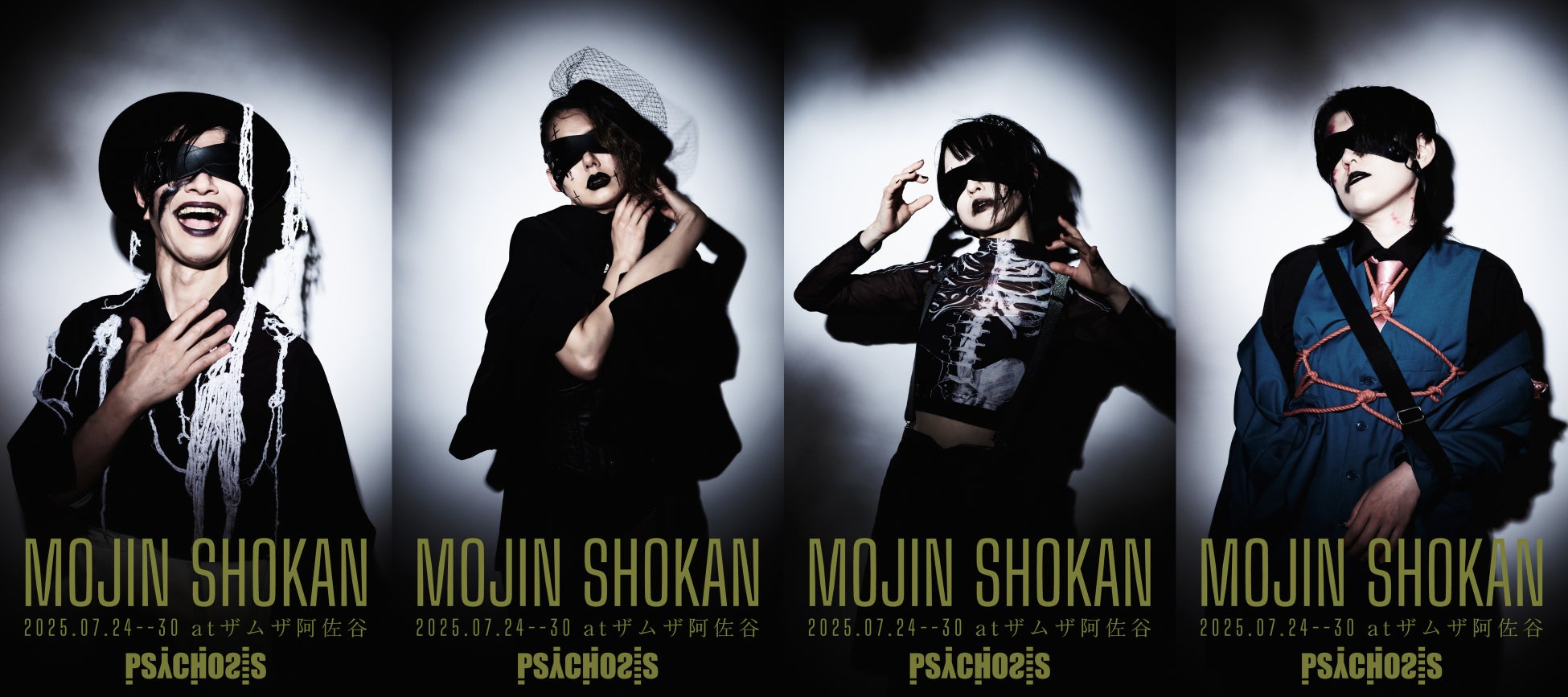 PSYCHOSISと言えば、過去には幻魔怪奇劇『DGURA MAGRA-ドグラ・マグラ-』を皮切りに、津山三十人殺しをモデルにした『TSUYAMA30』、葛飾北斎がナチスと戦う『HOKUSAI And The Dr.Caligari』など、アバンギャルドな作品を上演し続けており、今回の『盲人書簡◉上海篇』は2023年に上演した『疫病流行記』に次ぐ2回目の寺山修司作品となる。