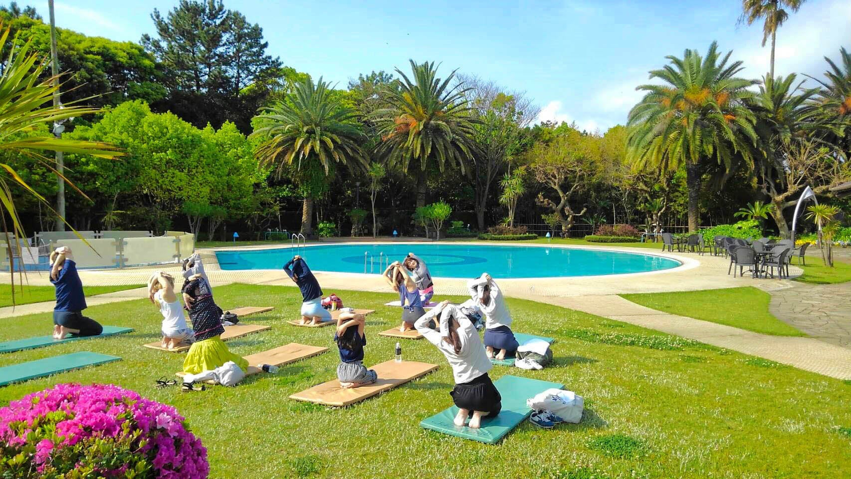 GWの3日間・宿泊者限定で、Shell Poolのプールサイドにて「モーニングヨガ」を開催します。朝の光に輝くプールを眺めながら、身体をほぐしてリフレッシュ!爽やかな1日のスタートにおすすめです。ヨガ未経験の方もどうぞお越しください。