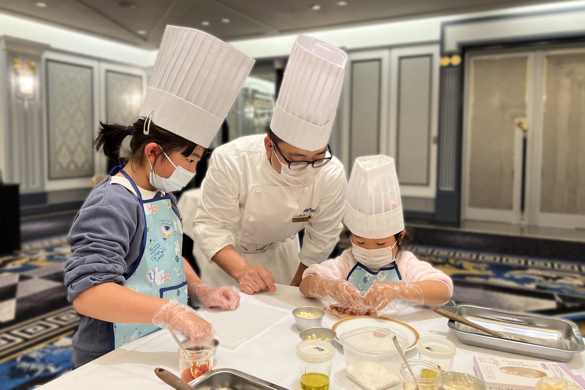 子どもたちの憧れ職業といえば「パティシエ」!そんなパティシエ体験にホテルビュッフェがセットになった、食べて学べるイベント『ホテルでパティシエ気分&ビュッフェ』をこどもの日に開催いたします。まずは「サンドウィッチ&スイーツビュッフェ~ストロベリーコレクション~」で人気のいちごビュッフェを満喫したら、コック帽をかぶっていざパティシエ体験へ。鯉のぼりをイメージしたパウンドケーキと、母の日にもぴったりなパン作りにご挑戦いただけます。完成品はお持ち帰りいただけるほか、もれなくシェフが作った作品のご試食もございます。