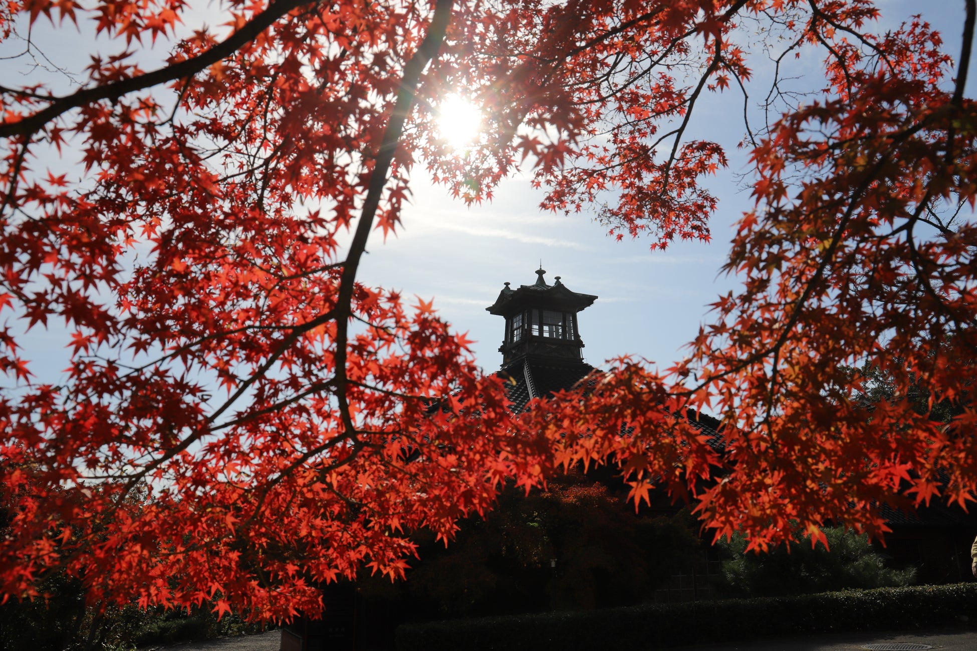 明治村では、明治時代を中心とする貴重な建造物と紅葉が融合し、ほかでは味わえない風景が広がります。赤や黄に染まるハナミズキやモミジなどが、西郷從道邸や金沢監獄中央看守所・監房などの歴史的建物を彩り、昔懐かしくもありながら、まるでタイムトリップしたかのような感覚に浸れます。