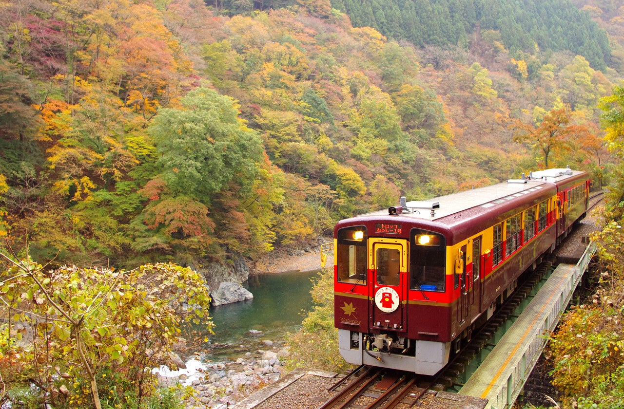 わたらせ渓谷鐵道では、関東屈指の渓谷美と鉄道が融合した秋の絶景が満喫できます。窓ガラスのないトロッコ列車「トロッコわっしー号」からは、秋風を感じながら、紅葉に染まる山並みと渡良瀬川が楽しめます。沿線には登録有形文化財にもなっている木造駅舎の駅も点在し、レトロな雰囲気が漂います。特に「古路瀬渓谷」や「沢入駅〜原向駅」間は写真映え抜群、標高差により紅葉が長く楽しめるのも魅力です。