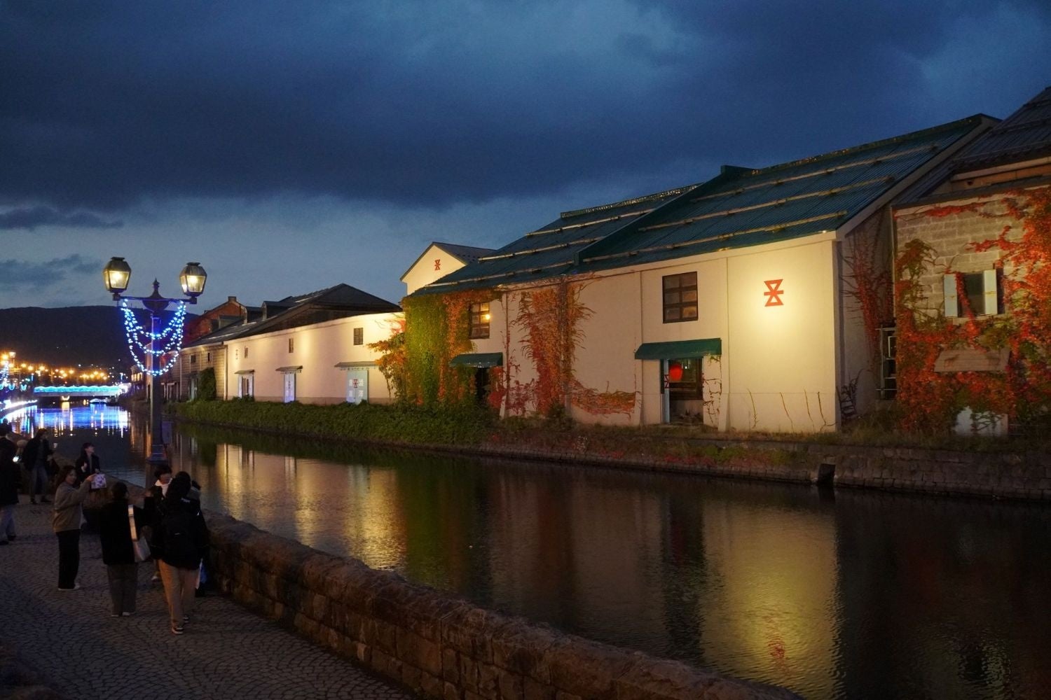 小樽運河周辺の紅葉は、歴史的な石造倉庫群と秋色に染まるツタが織りなす、懐かしさを感じる風景が魅力です。運河沿いの遊歩道では、水面に映る紅葉とガス灯の明かりが調和し、映画のワンシーンのような美しさです。11月からは青の運河という特別なライトアップが実施され、より幻想的な景観をつくり出します。