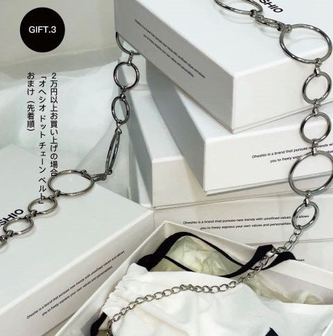 <OHESHIO>ポップアップストアで税込2万円以上お買上のお客様へ、オヘシオドットチェーンベルトをプレゼントします。
