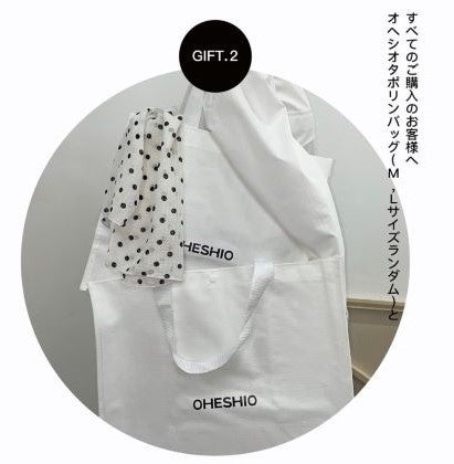 <OHESHIO>ポップアップストアでお買上のすべてのお客様へ、オヘシオポリンバッグ(M・L・サイズいずれか)をプレゼントします。