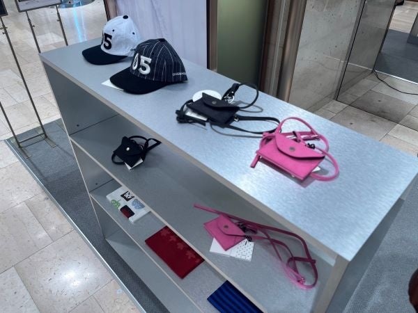 Tシャツ税込7,495円、帽子6,720円、ポシェット税込13,696円など。