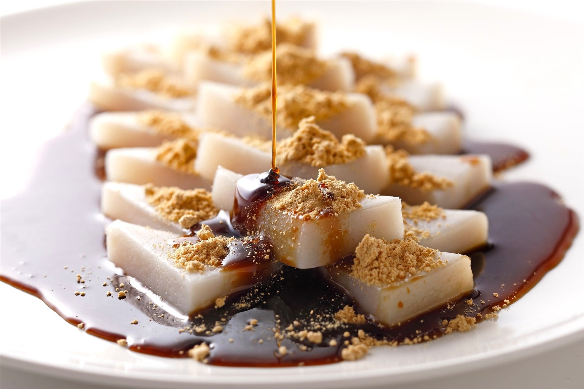 スイーツコーナーには、ふわふわの生地に林檎クリームを絞り、仕上げに粉糖をまぶしたフランスの揚げ菓子「林檎のベニエ」や、柔らかくとろけるような食感が特徴で、上品な甘さのきなこと黒蜜をたっぷり絡めてお愉しみいただける和のデザート「くずもち」など珍しいメニューが並びます。
