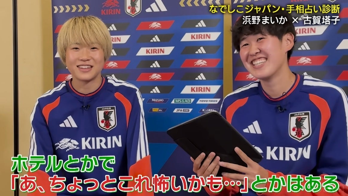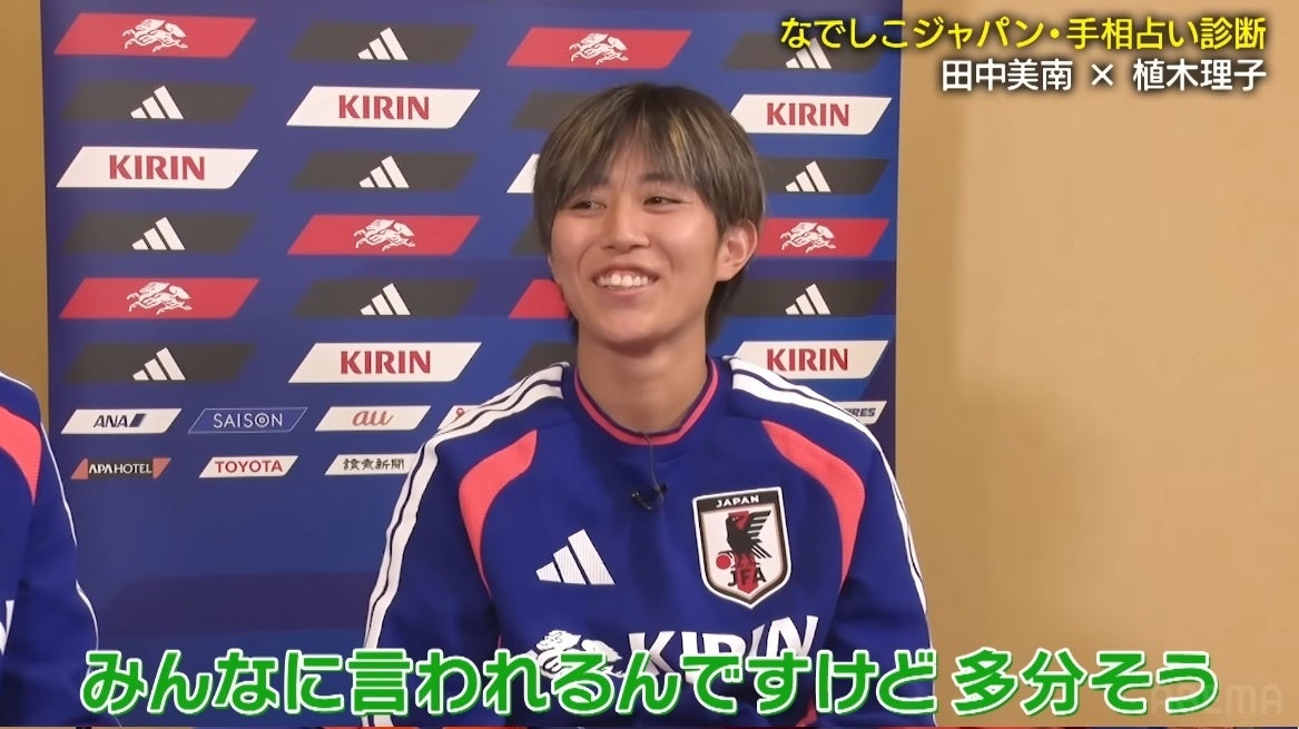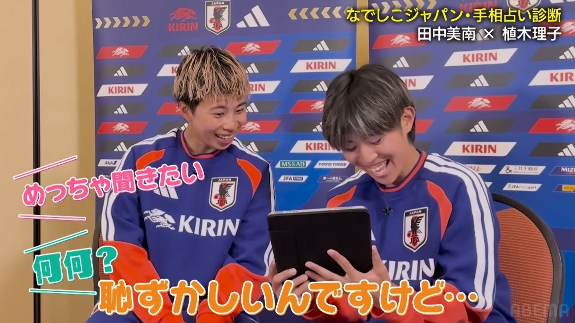 手相占い診断第1弾には、田中美南選手と植木理子選手が登場。田中選手は超人クラスの体力を持つという「三重生命線」に対して、植木選手から「めっちゃサッカー選手に良さそうっすね」という言葉が投げかけられると、満足げな表情を見せます。しかし恋愛面では、「ちょっとやばい、恥ずかしいんですけど」と前置きをした上で、「面食い」「甘え下手だけど、話すとピュア」という診断結果を自ら赤裸々に告白しました。一方、植木選手は、精神的に幼いと言われる「よちよち幼児線」に「あんま嬉しくない」と苦笑しつつも、「遠征から帰った後、荷解きが一生できない」というズボラな一面を告白。「褒められて伸びるタイプ」という結果にも「めっちゃわかる!」と激しく同意し、等身大の素顔を見せました。