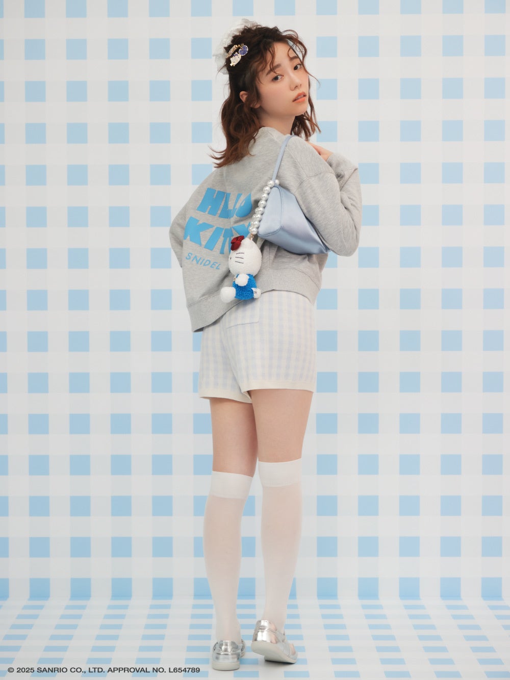 ショートパンツは左裾にダブルネームの刺繍を入れ、ヒップポケットにハローキティのリボンを刺繍した遊び心たっぷりのデザインです。