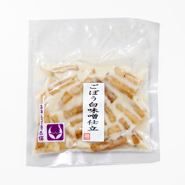 細くやわらかな若採りごぼうを、京都名産の白味噌でじっくり漬け込みました。白味噌のまろやかな甘みがしゃきしゃきとしたごぼうの食感とよく合い、ほのかな塩味がごぼうの自然な風味をいっそう引き立てます。食物繊維を豊富に含み、体にやさしく、毎日の食卓にぴったりの一品です。