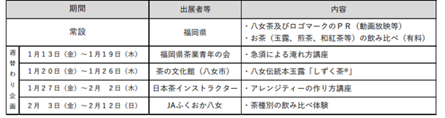 ※上記企画以外にも八女茶や八女茶を使ったお菓子を販売します