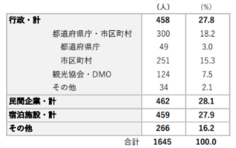 調査目的:JKN会員*をはじめとする観光業務従事者の業務実態や課題意識を把握し、地域観光の現状把握および今後の施策立案に資することを目的とする
