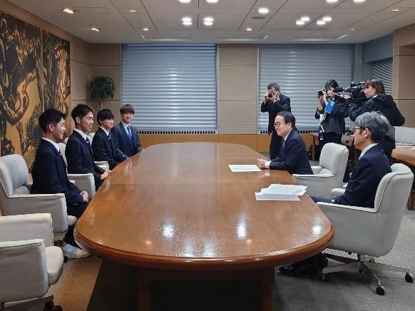 2024年10月6日に行われた『スポGOMI甲子園2024・香川県大会』で優勝した高松中央高等学校(香川県県高松市、校長:香川 泰造)在校生3人組の「高松中央高校吹奏楽部 うどんおいし〜な!!!」が、大会での成果を報告するため香川県池田知事を表敬訪問しました。