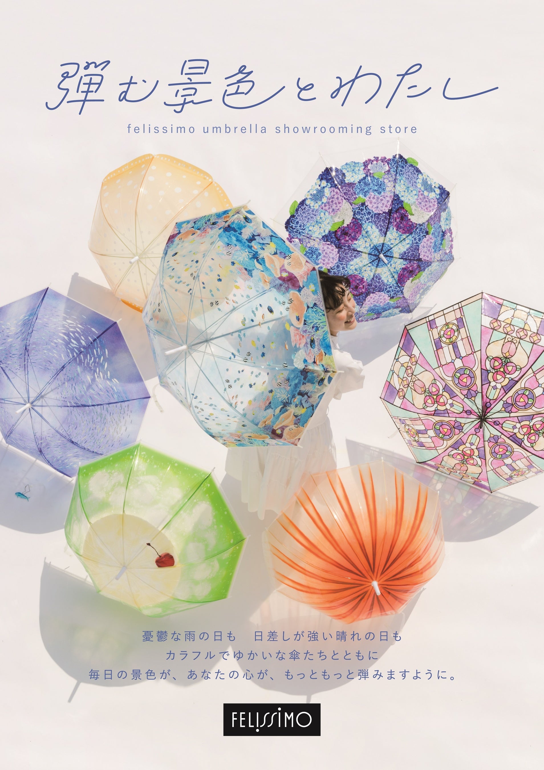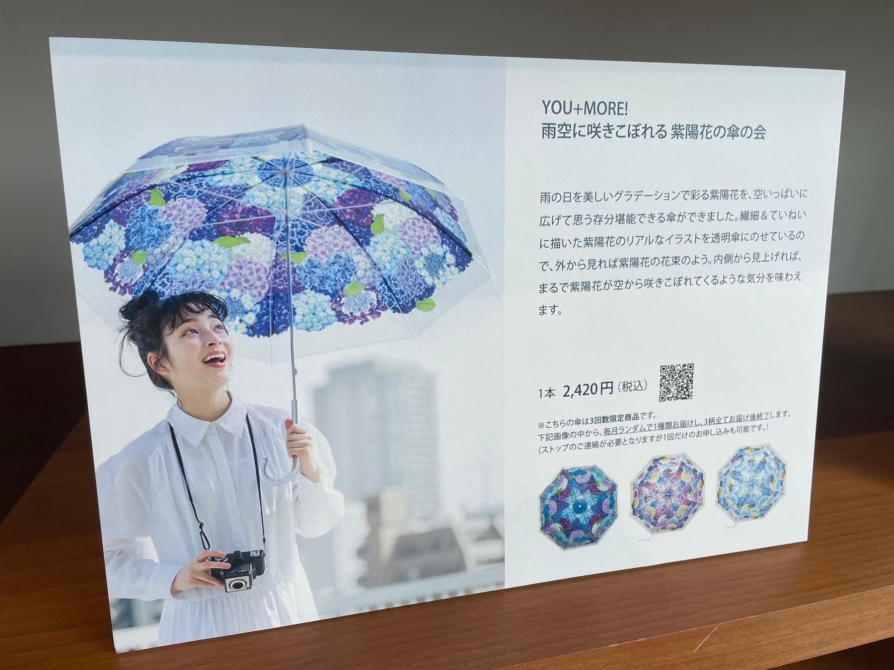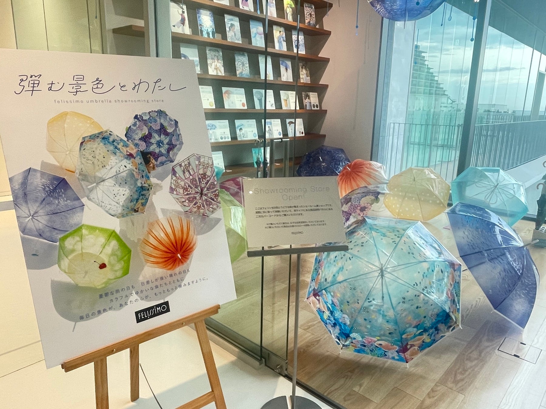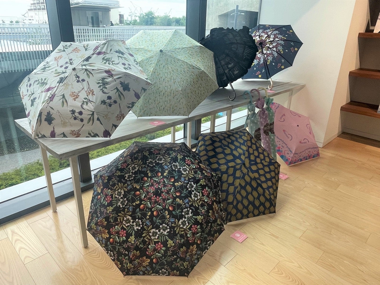 YOU+MORE!の透明傘シリーズに加え、フェリシモのオリジナル傘も展示しています。