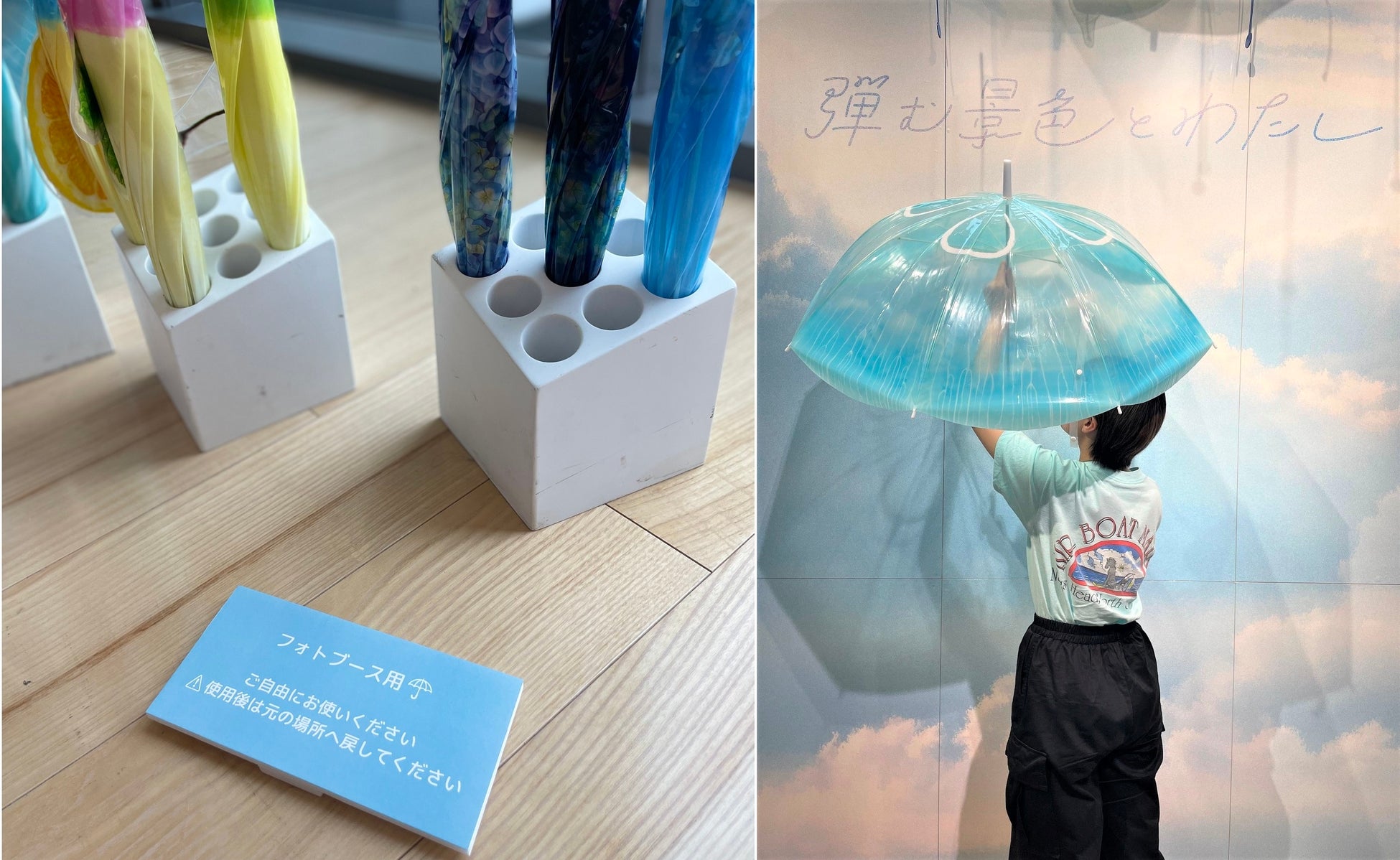 フォトブース(「弾む景色とわたし」ウォール)で、お気に入りの傘と一緒に撮影ができます