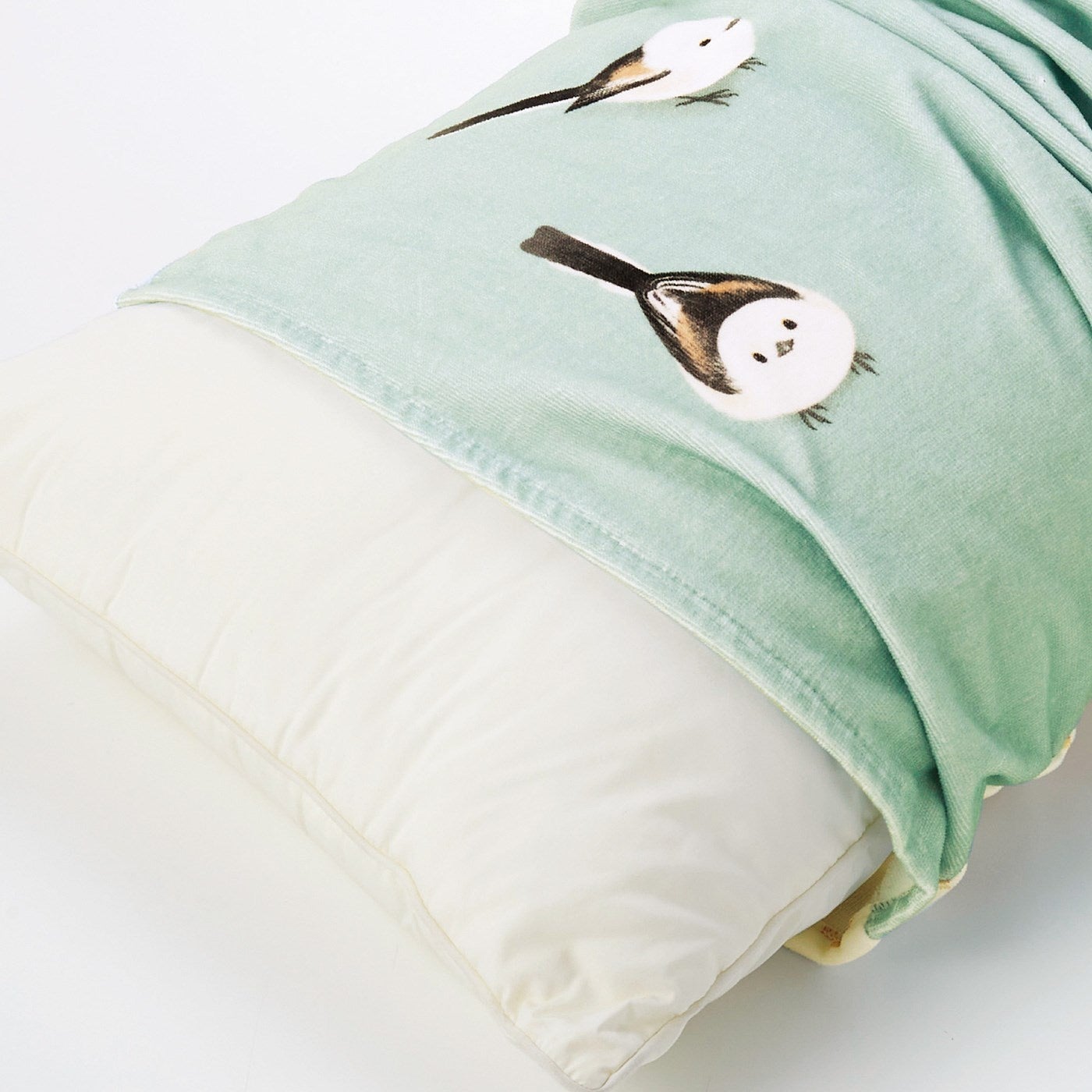 枕を入れて、余った部分は折り込むだけです。縦43cm、横63cmまでの枕に対応しています。肌ざわりはふわっとやわらかな綿100%のパイル素材です。