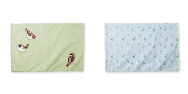 小鳥×植物のやさしい色彩に包まれて眠る「枕もとで小鳥たちがさえずる リバーシブル枕カバー」がフェリシモ「YOU+MORE!」から誕生