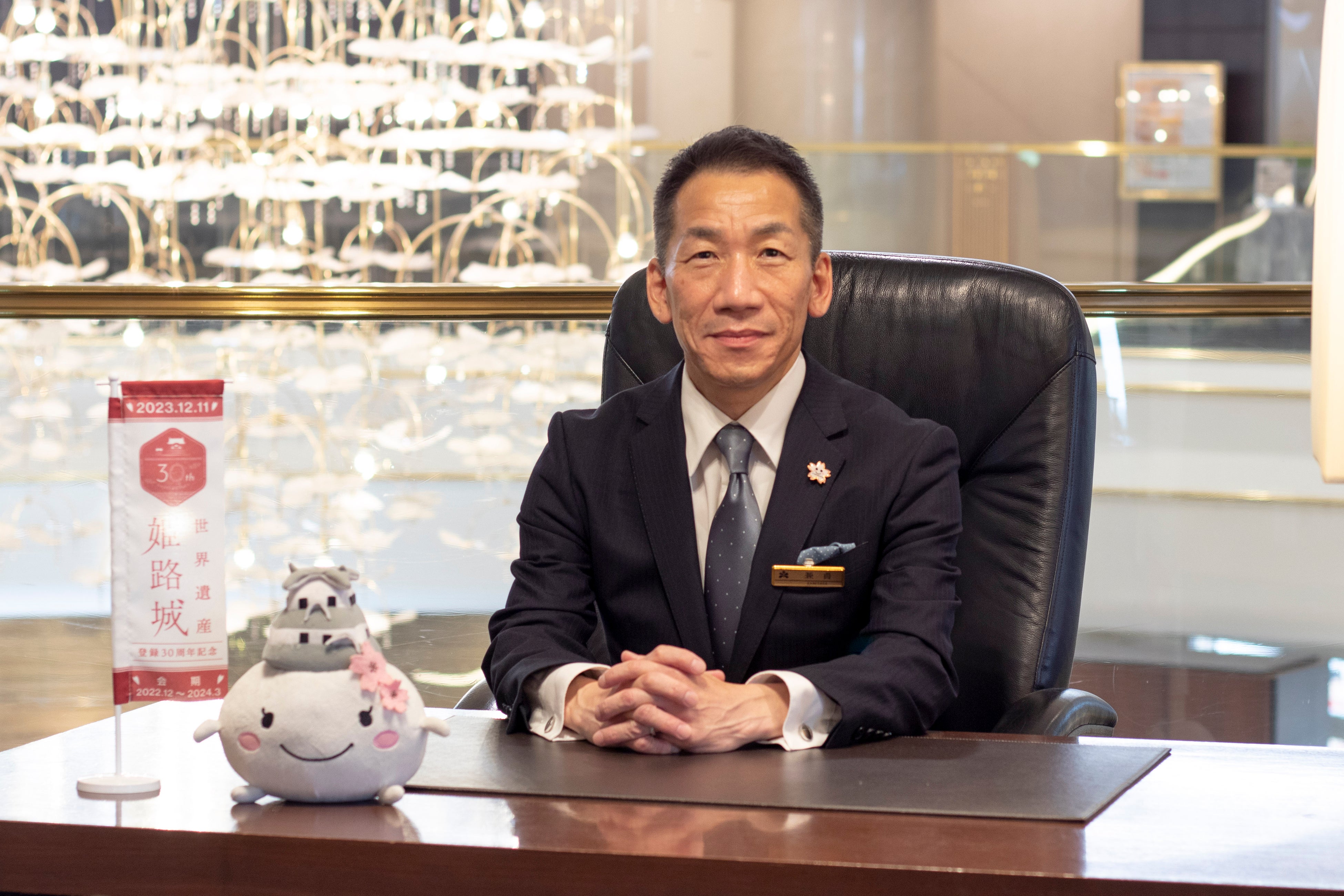 このたび、ホテル日航姫路の総支配人に就任できたことを大変光栄に思います。本年、姫路城は世界文化遺産に登録され30周年を迎えます。様々な記念イベントがコロナ禍からの回復に弾みをつけ多くの観光客を呼び込んでいます。これからも国内外からのお客様をお迎えする玄関口として姫路・播磨の魅力を提供してまいります。加えてホテル日航姫路から地域の隠れた魅力を引き出し新たな価値を生み出していきたいと思います。地域との共創に積極的に取り組み「姫路の新発見」を発信してまいります。