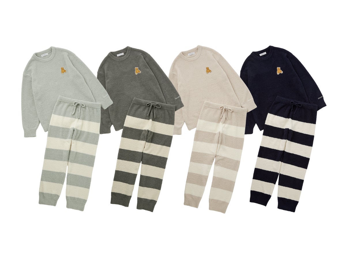 ほっこり可愛らしいベアをワンポイントであしらった、軽くて柔らかな’ベビモコ’素材のプルオーバー&ボーダー柄ロングパンツです。gelato piqueの定番素材をシンプルなデザインで楽しめるセットアップは、色展開も豊富でギフトにもおすすめ。プルオーバーの左袖口にはさりげなくロゴ刺繍も入っています。色はミント、グレー、ベージュ、ネイビーの4色をご用意しました。