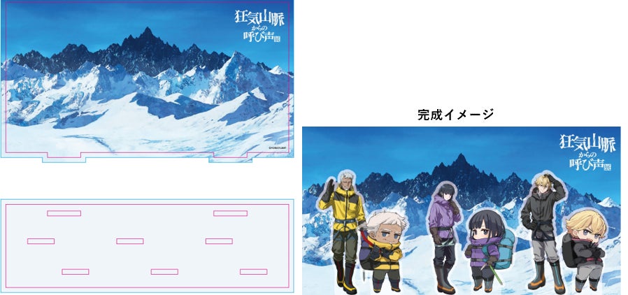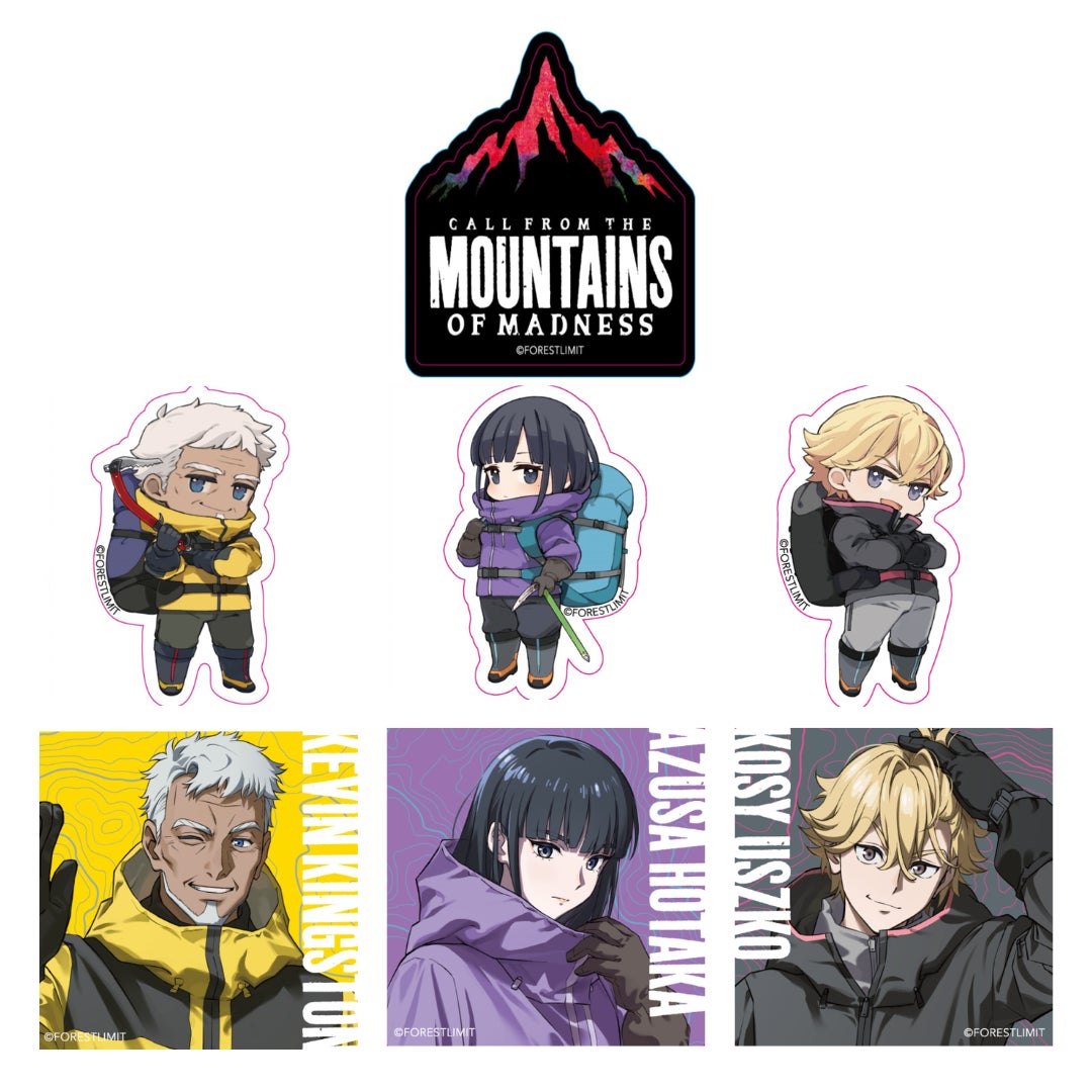 会場では展覧会に合わせ描き下ろしたシリーズ登場キャラ(K2、穂高梓、コージー・オスコー)の限定グッズの他、普段使いも可能な狂気山脈アイテムを複数販売予定でございます。