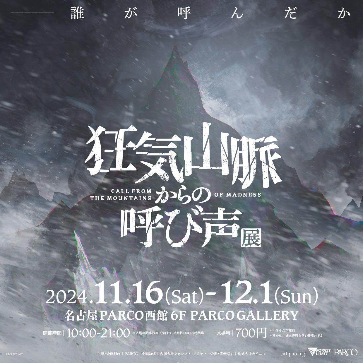 名古屋PARCOはまだら牛作シナリオ「狂気山脈」シリーズの世界観を表現する展覧会『狂気山脈からの呼び声』展を開催します。池袋PARCO・札幌PARCO・心斎橋PARCOに続き4会場目の開催となります。