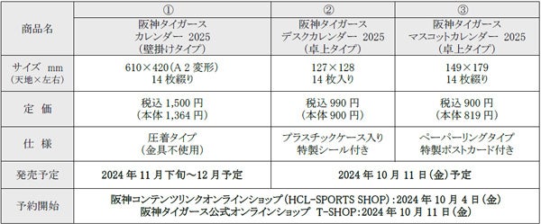 ― 阪神タイガース カレンダー 2025年版 発売について ―