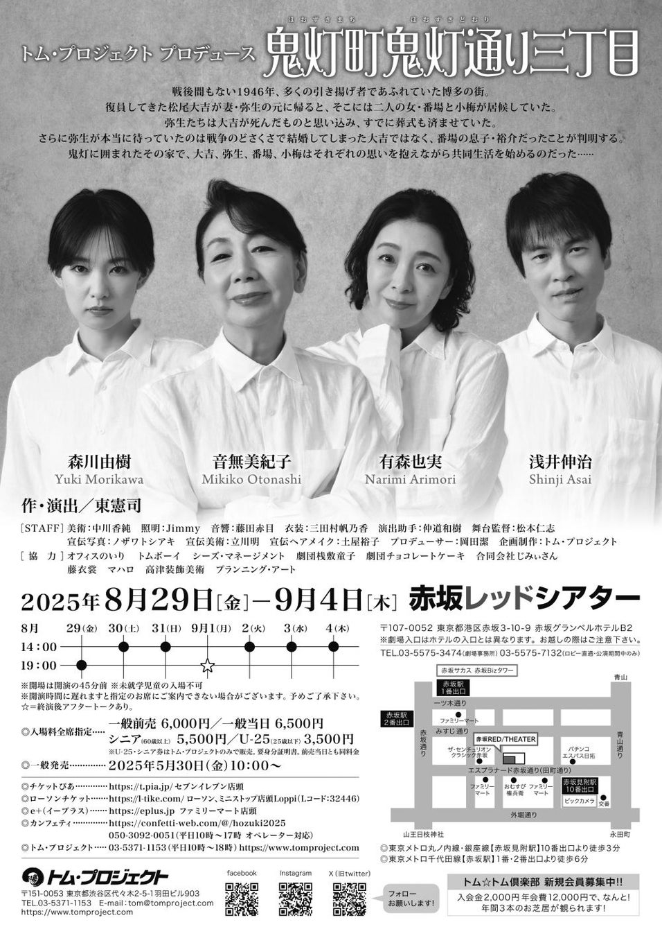 トム・プロジェクト プロデュース『鬼灯町鬼灯通り三丁目』が2025年8月29日(金)~ 9月4日(木)に赤坂レッドシアター(東京都港区赤坂3丁目10−9 B2F)にて上演されます。
