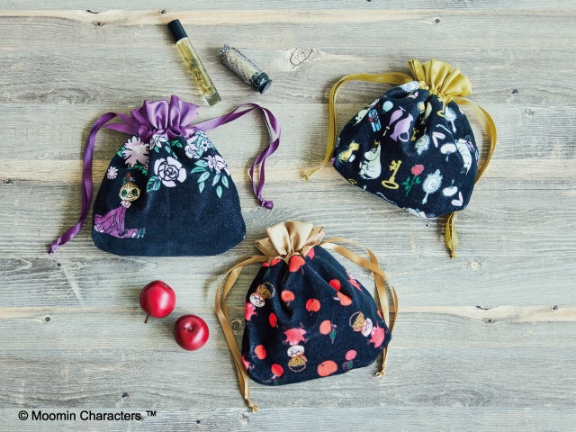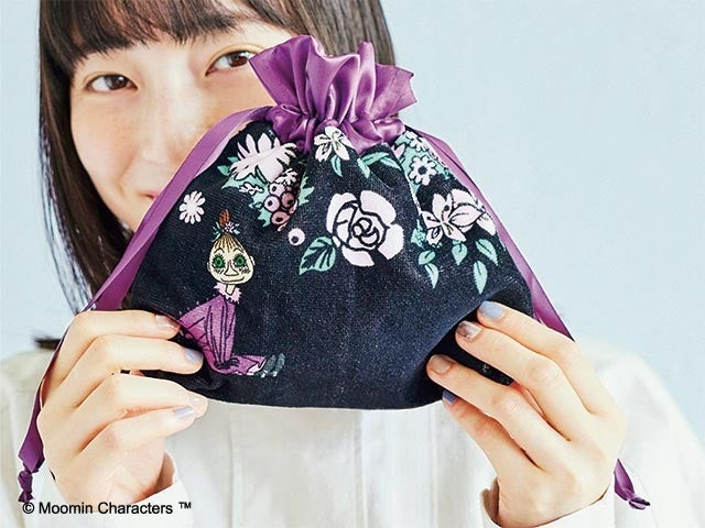 ムーミン谷のおしゃまな女の子たちがオリジナルデザインでプリントされたきんちゃくポーチです。デザインは〈リトルミイ〉〈ミムラねえさん〉〈スノークのおじょうさん〉のキュートな3種類です。高級感のある手ざわりで、ふんわりとした厚みが中の物をやさしく包みます。