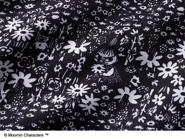 小花柄に見せて、お花の間にリトルミイがこっそり隠れているデザイン。ほかにも隠れている小さないきものたちも探したくなります。
