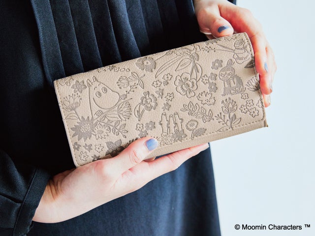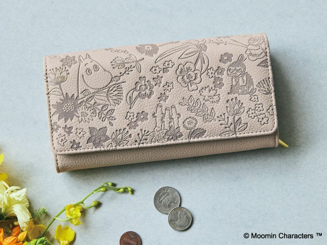 【NEW】ムーミンと仲間たち 華やかフラワーの型押し財布〈ベージュ×アンティークイエロー〉